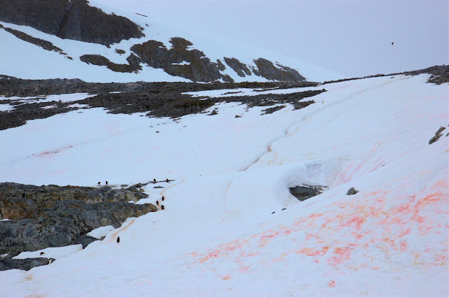 The penguins. "Carefree" comes to mind. While some huddled on the rocky beach, others, more independent souls, decisively marched along snowy trails with self-assurance, if not downright boldness. Going somewhere. Anywhere. Unaware. Blissfully unaware...